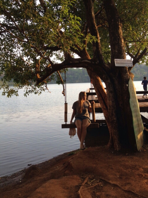 Dann geht es weiter zum Kratersee (80m tief!). Hier springen wir mit Einheimischen vom Holzsteg und schwimmen umher.